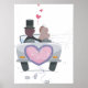 A just married couple driving off in a car after wedding. This design looks really effective on these Poster