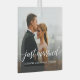 Embrace the modern elegance of the script design for the words, as it adds a touch of sophistication to your ornament. Personalize it with your names and wedding date, making it a cherished keepsake that commemorates your journey from "Just Married" to celebrating your first Christmas together as a couple.