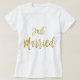 Just Married Gold Foil Typography T-Shirt for a newlywed on her honeymoon.