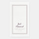 Simple, minimalist and chic "Just Married" wedding dinner napkin features a modern design with a double framed border in moody dark purple on a crisp white background. This modern simple design provides timeless, classic sophistication. Personalize names of couple and event date in modern blue lettering. These are a perfect accompaniment for any wedding party! Be sure to see the collection link on this page to view all of the matching items! Please direct questions or custom requests to invitationsuites@gmail.com.