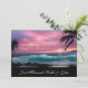 Just Married photo card is shown with a photo print of a beautiful beach at sunset with a black accent with text, customize this card and change the photo to yours, change the text to yours, you can even put a message on the back.