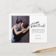 Just Married photograph wedding thank you postcards, using the template - upload your favourite wedding photograph and customize front side of card with names. Reverse side of postcard is left blank for a handwritten message. Add your return address to be printed.