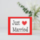Proudly tell the world you and your sweetheart just tied the knot with this fun red heart Just married announcement post card.