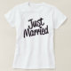 Great shirt. My husband and I both wore Just Married shirts when we left for our honeymoon and everyone in the airport loved them. This shirt was a very good size but it was pretty thin. I wore a tank top underneath it and it was ok after that. I like my shirts a little longer and this one was perfect. The font was very cute and the printing was pretty good even after it was washed twice.