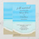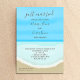 This just married invitation features a gorgeous digital watercolor of the ocean with waves coming onto the sandy beach. The words, "just married" appear in the sky. You can also customize your names and date of marriage in the sky. The beautiful ocean is the setting for your celebration party details with rsvp information in the sand. This is a lovely way to invite guests to your post wedding reception. Copyright henishouseofpaper