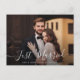 wedding announcement with white script and a thank you message to your guests. The couples image can be personalized.
