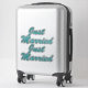 2 x JUST MARRIED XL Car & Luggage Stickers - Font #3 Brush Script - a bold Italic script font - TEAL #009193 COLOR TEXT. 14" x 14" XL Extra Large Kiss Cut Stickers - with GLOSSY TRANSPARENT 0.125" BORDER & FILL.