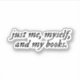 Let your love for books shine with this "just me, myself, and my books" design tailored just for book lovers. Spread the love for literature wherever you go with this reading-inspired design because every book deserves a little extra sparkle.