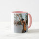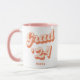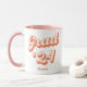 Introducing our custom retro-inspired coffee mug, perfect for the class of 2023! The mug features a vibrant peach and orange typography design on a light pink background, with the words "grad '23" prominently displayed along with a personalized name. This mug is the perfect graduation gift for any student in the class of 2023, and can even be customized with a favourite photo of the graduate to make it an even more special keepsake. The mug is made of high-quality ceramic and is dishwasher and microwave safe, ensuring that it will be a treasured item for years to come. Whether you're looking for a gift for a family member, friend, or yourself, this mug is sure to be a hit!