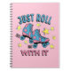 Retro style illustration with "Just Roll With It" text design and colourful stars and roller skate decoration