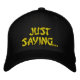 Fits well due to elastic edging, not adjustable. Good qualty material. Good quality embroidering. Subtle lettering (white on beige) just as my wife likes.