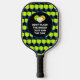 Fun JUST SINK THE DINK customizable pickleball paddle for men, women and children who love to play pickleball. The design shows a background pattern of lime green paddles, and inside the circle the wording reads DON'T FLASH THE SMASH JUST SINK THE DINK. This text is CUSTOMIZABLE so you can replace it with your choice, eg. your name, team name, motto, etc. This pickleball paddle is designed for pickleball moms, dads and kids who like playing as a pickleball team. Buy matching paddles for each person on your team or in your family. Choose from a wide selection of pickleball designs and gifts by Berean Designs.