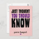 Just thought you should know... Customizable cards from BlackHeartCards, just click the 'customize it' button to add your own sincere or snarky message! Alternatively choose from one of our pre-made messages if it fits the sentiment!