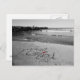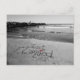 Juste carte postale mariée écrite en sable. Image noire et blanche avec un coeur rouge lumineux. Cette photo a été prise sur la plage à San Diego. Grandes idées de lune de miel