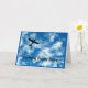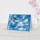 Un avion volant à travers un ciel bleu avec des nuages blancs duveteux est le sujet de ma "Rien de fantaisiste ici - Juste une carte d'anniversaire d'avion".