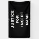 A powerful protest banner reading ‘Justice For’ followed by your custom text.