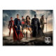 Check out the Justice League on a mist filled, rocky terrain. The sun dawns behind our hereos: The Flash, Superman, Cyborg, Wonder Woman, Batman, and Aquaman.