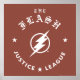 Check out this retro inspired lightning logo for Justice League's The Flash. His name is written in an old English style font with "Justice League" in a bold san serif font, both which encircle the lightning bolt icon.