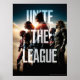 Check out the Justice League standing on the battlefield with the words "Unite The League" written over them.