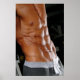 Four-colour photo poster of Justin Woltering's abs.