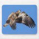 This juvenile bald eagle looks upward as it climbs into a vivid blue sky.