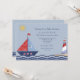 An adorable, juvenile invitation that's perfect for a birthday party or a baby shower. The card features a nautical scene on a sunny day with a sailboat passing a light house. The card is easy to customize with your wording, font, font colour and choice of six paper types.