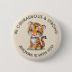 A pin button for kids featuring a charming tiger with encouraging message, "Be courageous and strong, Jehovah is with you."