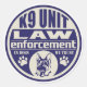 Very cool K9 logo with bold K9 Unit Law Enforcement text. Lower 'In Dogs We Trust' slogan and dog paw shapes next to a K9 German Shepard dog. Off white and dark blue colours, awesome Police K9 Unit gifts for handlers and supporters!
