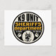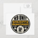 Black K9 logo with large K9 Unit Sheriffs Department text. Lower 'In Dogs We Trust' and two dog paw shapes next to a K9 German Shepard dog head. Off white, gold and black colours, great K9 Unit gift for handlers, sheriff departments and supporters!