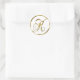 K Monogram Faux Gold Envelope Or Favour Seal. These classic round stickers are printed with non metallic ink on a flat sticker to look like gold. They are not beveled or embossed monograms but are designed to look like they are beveled or embossed monograms. These gold monogram seals are printed on a white background unless you select a different colour background before you proceed to checkout. In addition to being pretty wedding stationery supplies, these elegant wedding invitation envelope seals also make great monogrammed custom Christmas card seals, personalized holiday greeting card envelope seal stickers and customized Xmas card monogram seal stickers.