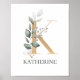 Lettre K monogramme floral. Lettre K en texture brun doré accentué avec de l'aquarelle verte composé de feuilles et de baies et de poussière d'or. Personnalisé avec nom dans la police correspondante.