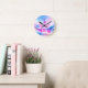Great clock, perfect size , great material that dont look cheap. The picture has great color, picture is easy to see, size is great. Looks great ! You will not be un happy