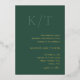 Elegant wedding invitation featuring a chic and contemporary design with a minimal layout. At the top is your monogram in a large bold format and below are your event details in right alignment for a modern touch. The back has a template for additional details and you may delete the text in that field if you prefer to leave the back blank. The colour palette is hunter green with your details in real foil, making this invitation great for a fall / autumn or winter wedding but may be updated to any colours you choose in the design editing tool.
