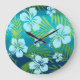 Kalani Tie Dye Blend Tropical Hibiscus - Teal Large Clock
