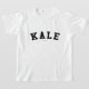 Kale! Is your name Kale? Or do you have a husband, boyfriend, male family member or male friend named Kale? If so, this "Banner" shirt is exactly the gift that you're looking for! The design features "Kale" in arched black lettering across the chest in the classic College font.