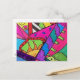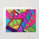 A vibrant,colourful postcard depicting the abstract art of PK Fairaday.
