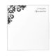 Adorable little note pad that you can personalize in white with a black damask design in the upper left hand side corner. These make great gifts.