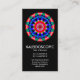 A stylish business card template with an attractive abstract kaleidoscopic mandala motife. Main company details on the front, with name and personal contact on the back.