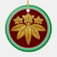 Get this ceramic ornament with this famous Japanese Kamakura Minamoto Mon in faux gold (BEWARE! This is a photo image). The background is red with a white and green border.