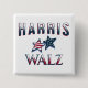 Democrat button in support of Kamala Harris and Tim Walz for president and vice president in 2024 US presidential election.
