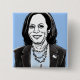 Democrat button in support of Kamala Harris. A cartoon caricature of Kamala.