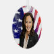 2024 Presidential election in the US. Kamala Harris 2024. Patriotic Christmas ornament with an American Flag in back of Kamala. Prayers for a kinder country.