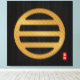 This is the family crest ( kamon ) of the Sakuma family . You may transfer this design to other products. Gold and wood print design.