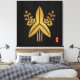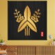 This is the family crest ( kamon ) of the FUKUSHIMA family . You may transfer this design to other products. Gold and wood print design.