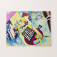 Kandinsky Black Grid puzzle. Oil painting on canvas from 1922. Wassily Kandinsky is regarded as one of the most innovative abstract artists of the twentieth century. Black Grid is a visually dynamic composition feauturing lively purples, yellows, and blues. Kandinsky’s characteristic sharp black lines surround a black grid at the centre of the painting. A great gift for fans of Wassily Kandinsky, abstract painting, and Russian art.