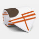 This necktie has a Kandinsky inspired mid-century modern design of sets of rectangles formed by a continuous line each with an oval inside in retro colours of orange, brown, gold, and turquoise on a white background. If you like the design but prefer different colours, message me.