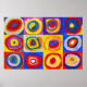 Kandinsky Circles poster. Oil painting on canvas. One of Russian artist Wassily Kandinsky famous circle paintings, this version features a beautiful collection of abstract circles with vibrant oranges, yellows, purples, blues and reds. A great gift for fans of Kandinsky, abstract paintings, and fine art.