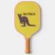 Pickleball paddle features kangaroo silhouette in aboriginal mosaic pattern on yellow background with "Australia" in grunge style text
