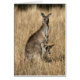 J'ai pris cette photo dans la brousse en Australie. Il montre une maman kangourou debout avec de l'herbe dans sa bouche, en observant le danger pendant que son bébé (Joey) tente de déplier ses longues jambes pour sortir de sa poche. C'est un spectacle extraordinaire et unique que de voir ces gracieux marsupiaux avoir l'air plutôt maladroit avec seulement leur tête et leurs pieds collés tout droit hors de la poche. Cette image est parfaite pour que vous personnalisiez avec votre propre message d'être dans un espace exigu, d'avoir de la claustrophobie, d'avoir votre adolescent à l'université, ou juste un beau souvenir photographique d'un séjour en Australie.