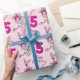 Cute whimsical kangaroo with a pouch full of hearts birthday age wrapping paper for a animal and kangaroo loving girl. Personalize with your own name and child's age. Currently reads Amelia 5. Exclusive art and designed by Sarah Trett for www.mylittleeden.com